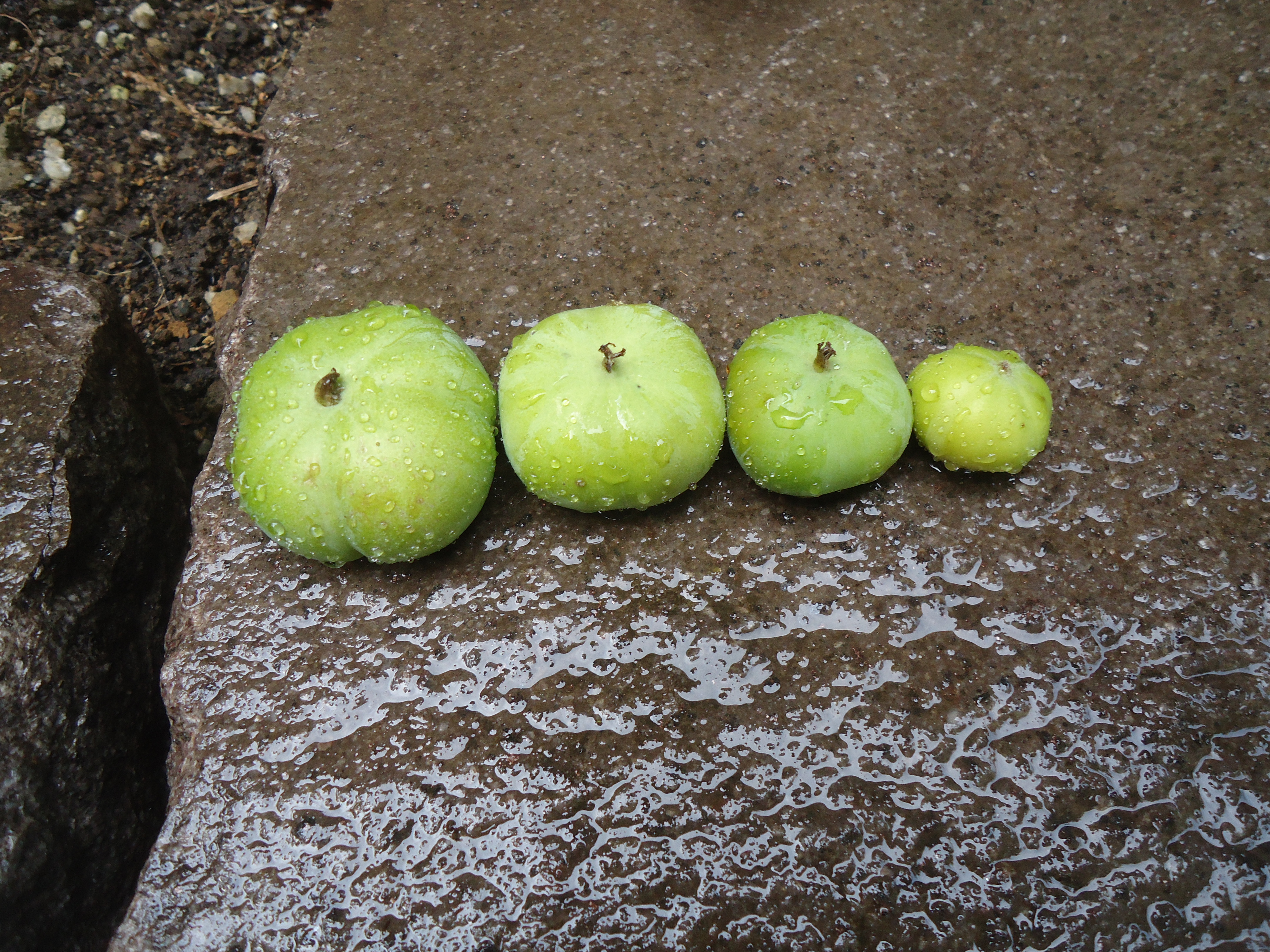 風やカラスに落とされた柿の実が毎日数個以上拾います。色づいた柿を食べたいですね。